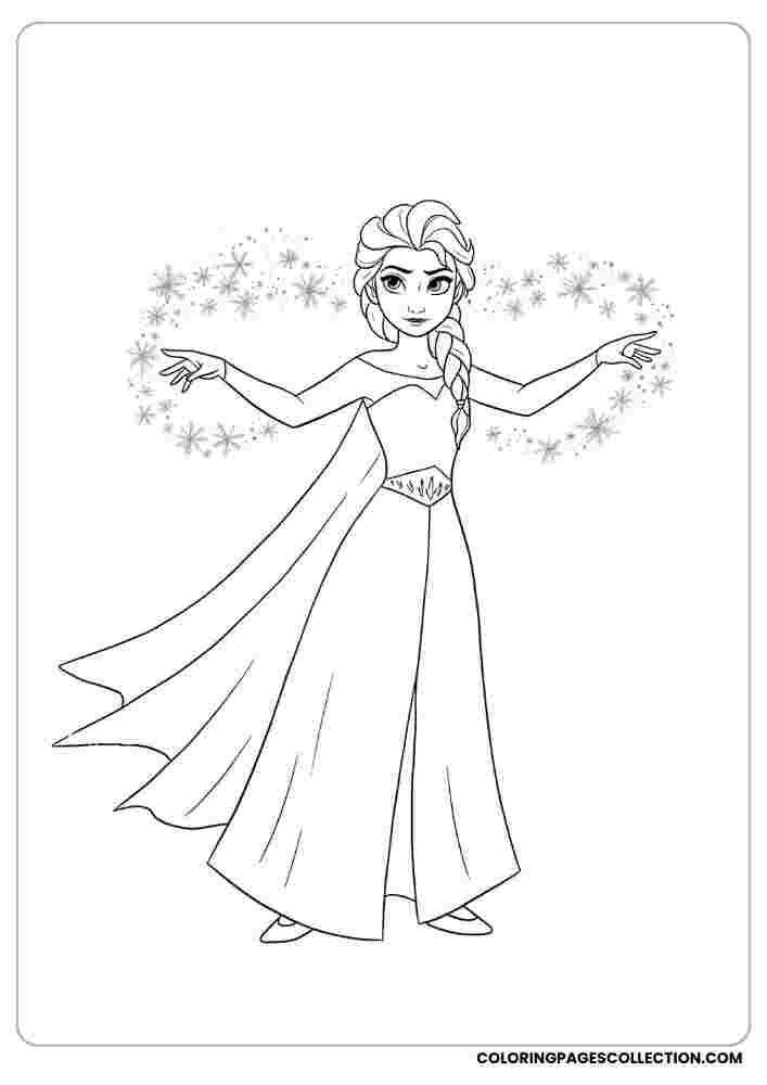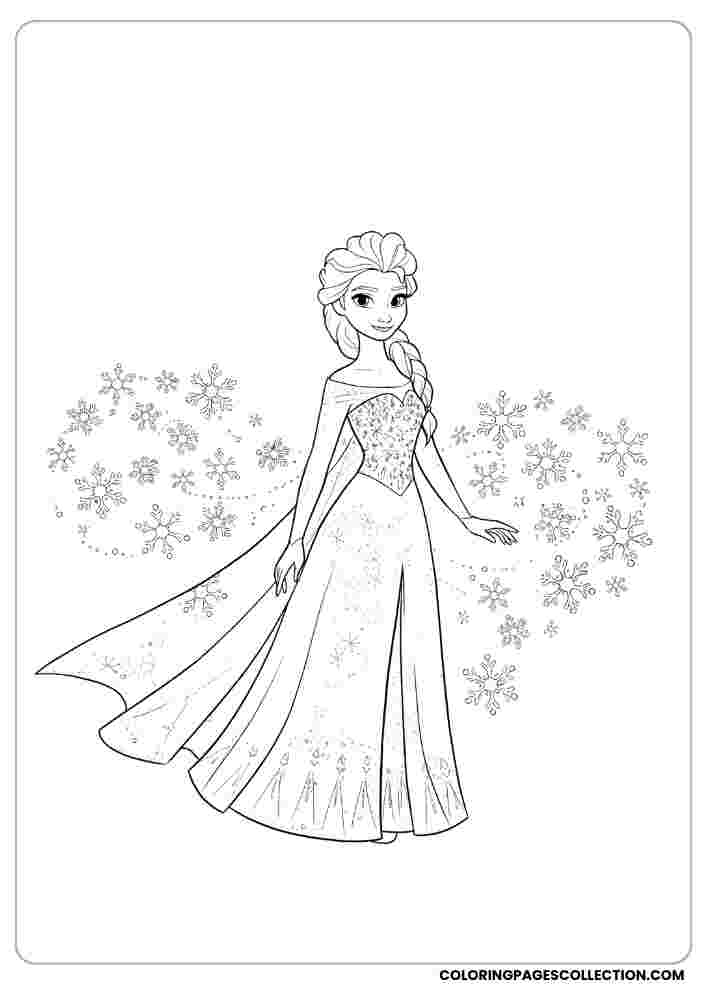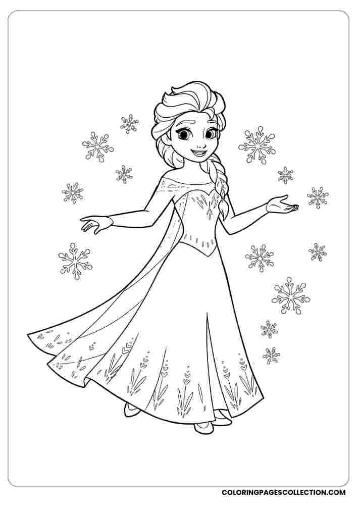 This easy Elsa with snowflakes coloring page looks amazing by adding a mix of your favorite colors and artistic style.