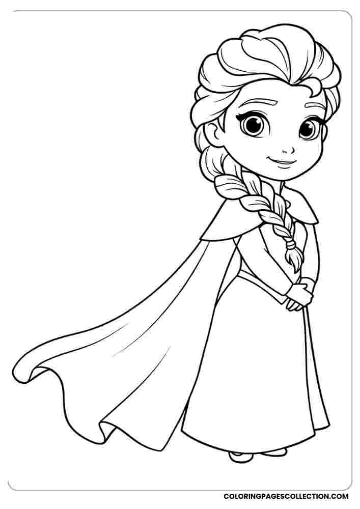 Have fun exploring different color combinations while taking this cartoon Elsa for little ones page. Use bright, soft, or even mixed shades to make it shine.