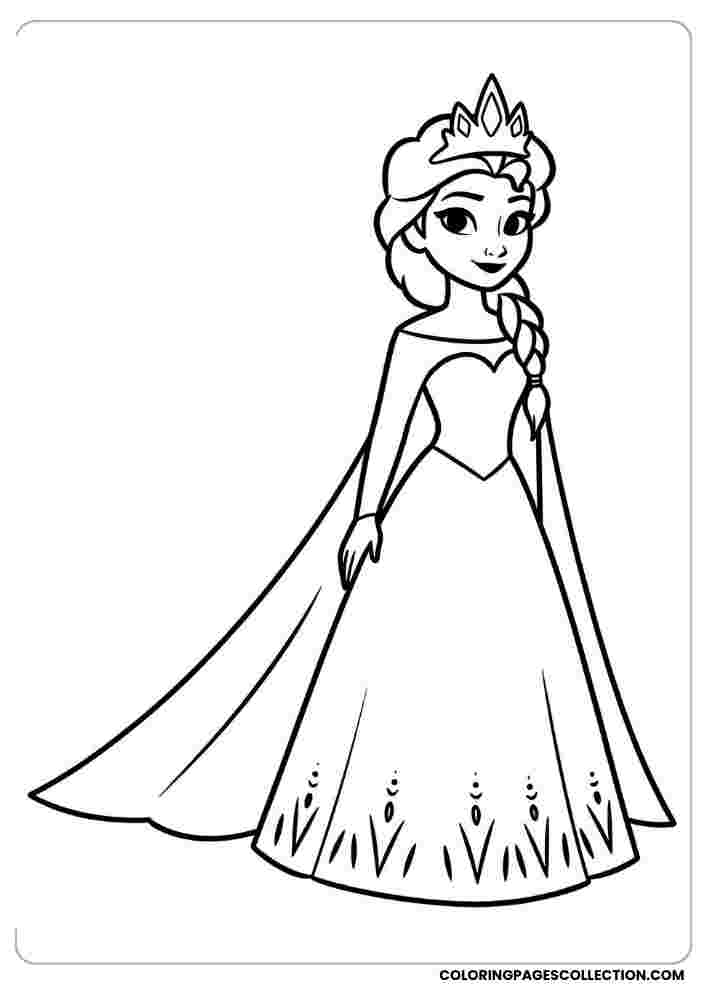Be ready for early creativity with its detailed toddler Elsa with a crown page. There are no rules; just have fun with it. Coloring pages look amazing by adding a mix of your favorite colors and artistic style.