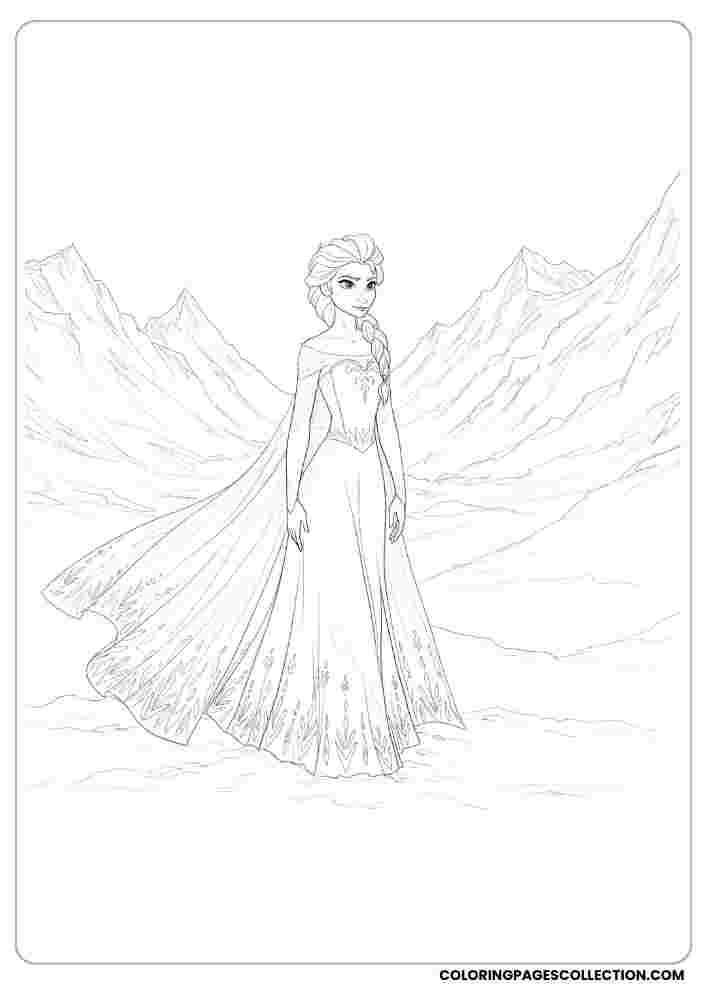 This wonderful Elsa in snowy mountains Let the coloring page and your imagination run with colors and make it unique.