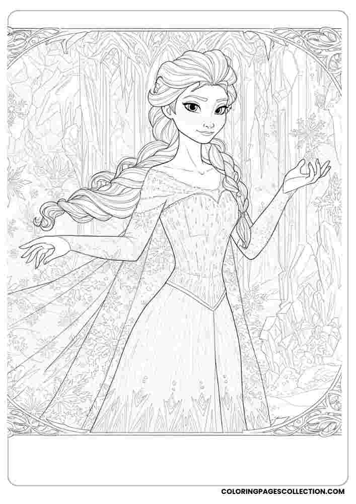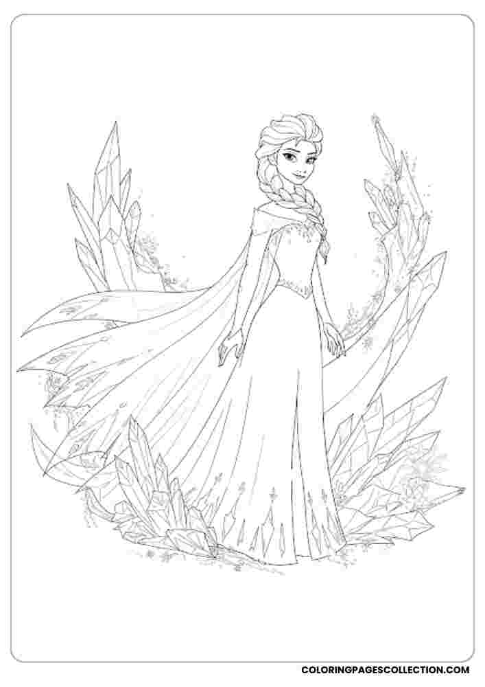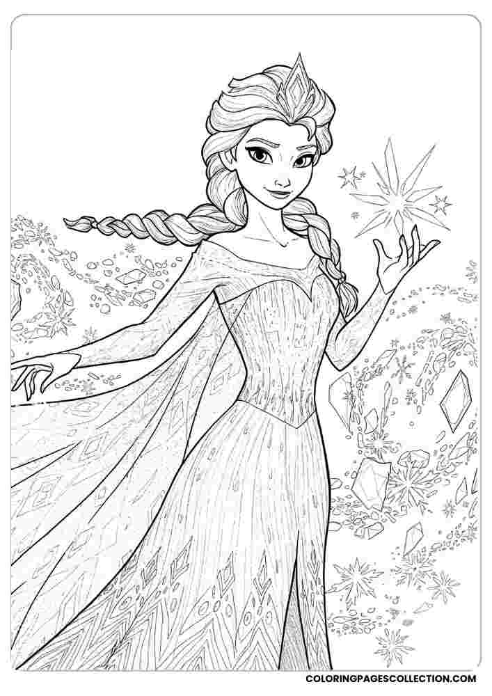 Have fun experimenting with different colors while filling this Elsa with ice crystals coloring page for life. Use bold, bright, and beautiful colors to make it stand out.