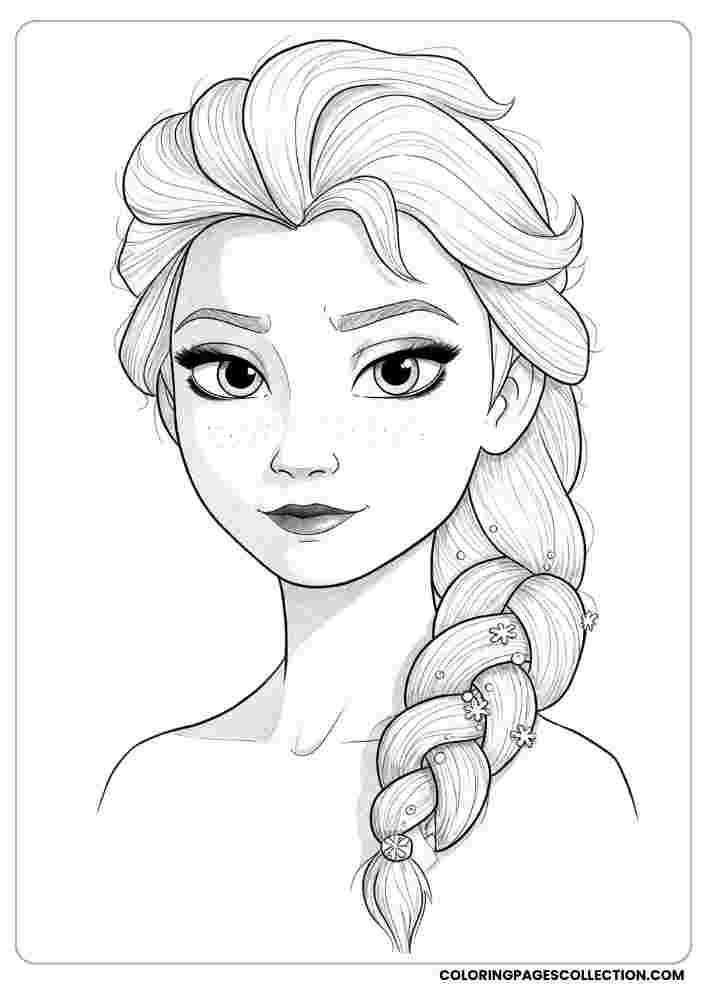 Let your creativity shine by coloring this beautiful realistic braid Elsa coloring page to life by adding your special touch with colors that make you happy.