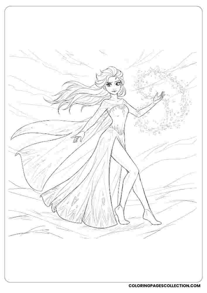 Enjoy a peaceful coloring with this beautifully designed fantasy Elsa with a flowing dress coloring page with colors that reflect your mood, style, and artistic expression.
