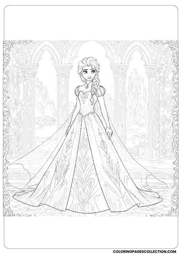 Transform this detailed, elegant Elsa with a lace gown color page for life. Use your most creative color options to make it special.