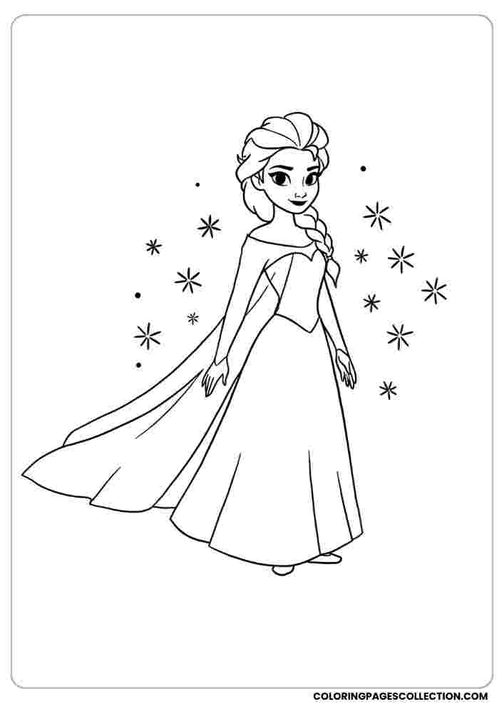 Dive into this beautifully detailed basic Elsa with stars coloring page. Use different shades and make it as unique as you want.