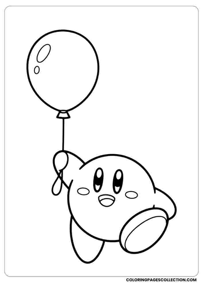 Have a great time coloring this beautiful Kirby flying with balloons design. Choose bold or soft shades to make it unique.