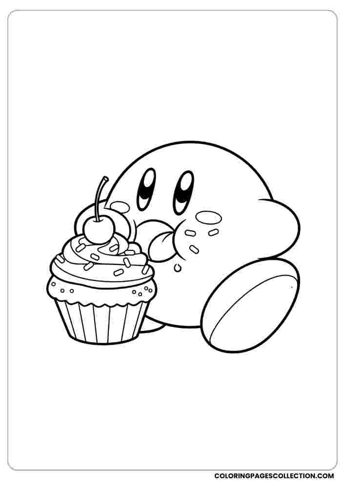 Take a break from your busy day and enjoy the coloring of this unique Kirby eating a cupcake page. This is a great way to relax, unwind, and have a little fun.