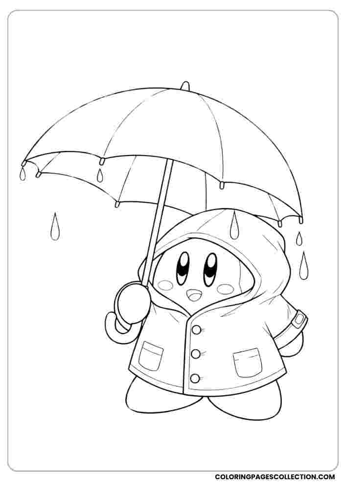 Bring this awesome Kirby in a raincoat with an umbrella coloring page to life using any color combination. Make it really your own artistic creation with your unique style.