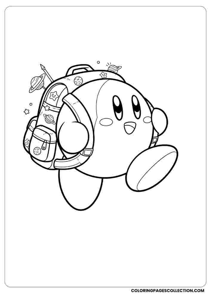 This wonderful Kirby with a backpack going to school coloring page is ready for you to add your creativity. Choose your colors and make it look absolutely amazing.