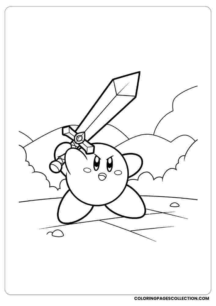 Here is a beautifully designed coloring page that contains a Kirby with a sword in a battle stance. So take your time and fill it with colors you want.