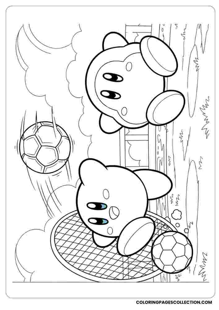 This is Kirby playing soccer with Waddle Dee. The coloring page is an ideal example of a comfortable break, so grab your favorite colors and start adding something.