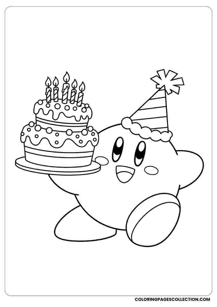 Ready to express yourself through art? This charming Kirby with birthday cake and party hat will help you create something really magical.