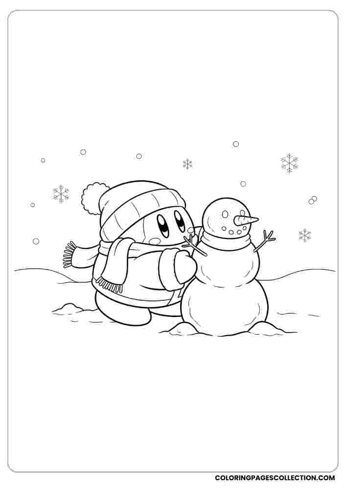 Make this charming Kirby building a snowman coloring page look amazing by adding a mix of your favorite colors and artistic style.