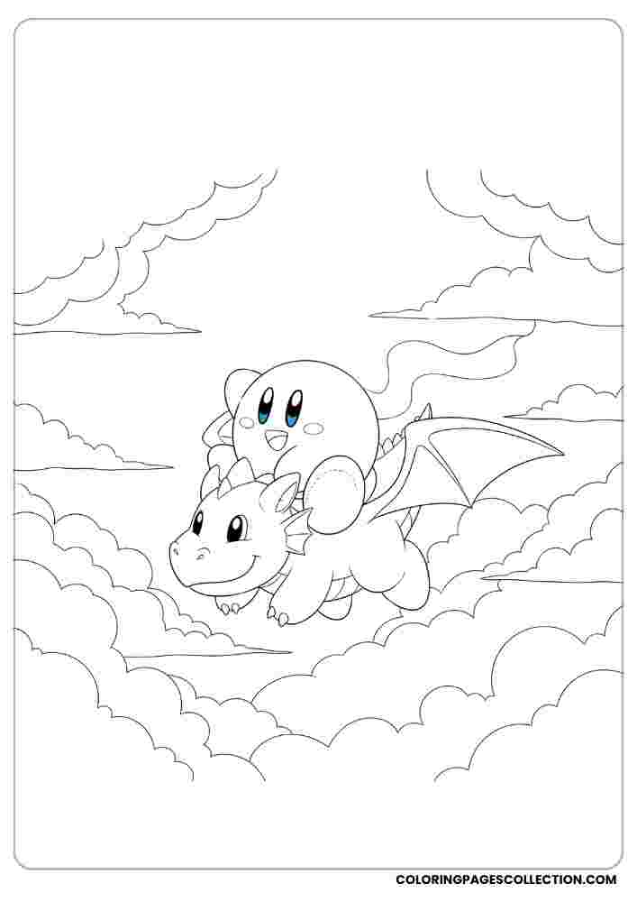 Spend some time coloring this fun and creative Kirby riding a dragon design. Enjoy the relaxing process of bringing it to life with colors.