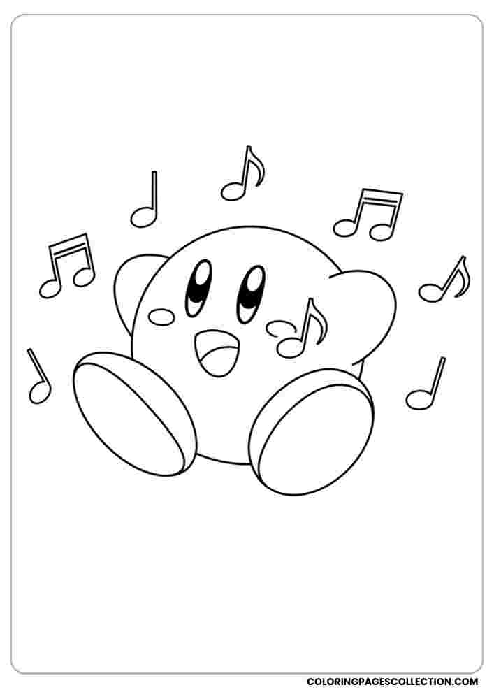 This lovely Kirby is singing with musical notes. The coloring page is ready for you to make it look amazing. Choose colors that make you happy and enjoy.