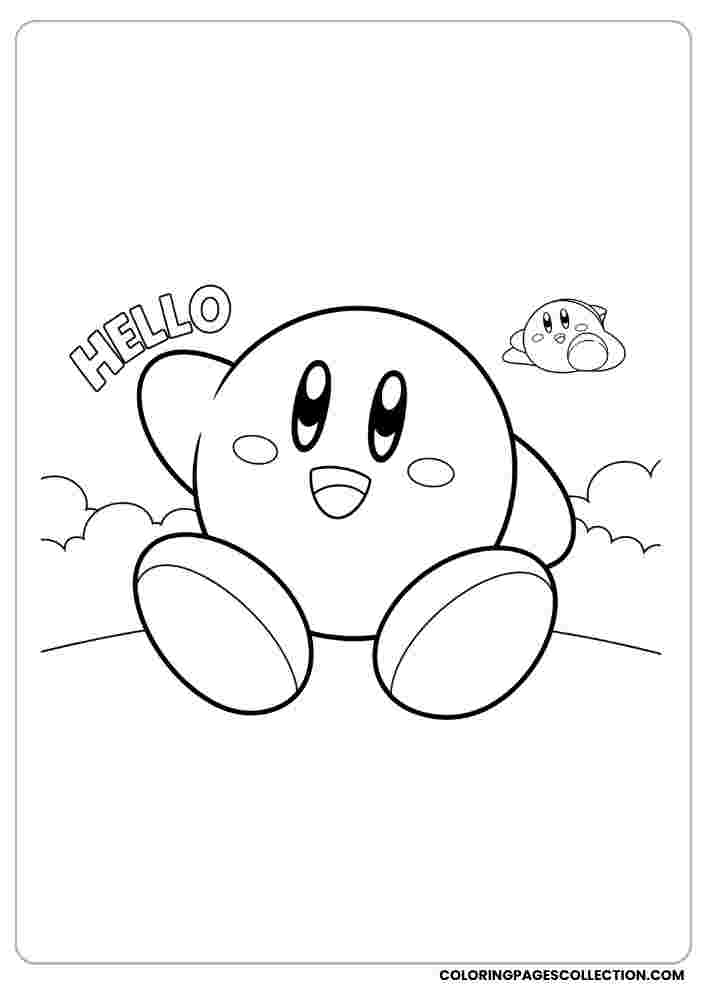This coloring page features Kirby waving hello. You are waiting to turn it into an excellent work. Choose your color and start filling in details.