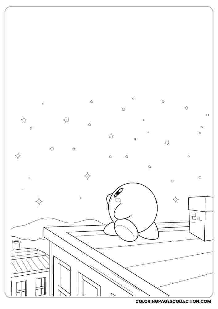This creative Kirby stargazing on rooftop coloring page is ready for you to bring it to life. Use your best colors and enjoy the process.