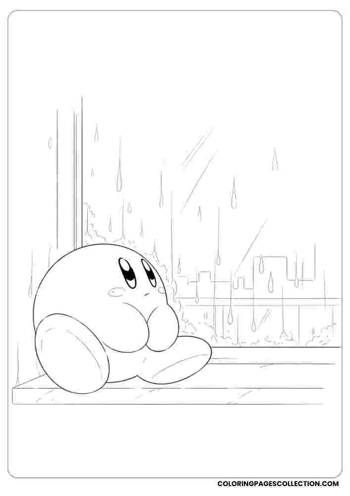 Sit back, relax, and color this wonderful Kirby on a windowsill during the rain. It is the perfect way to relax and be artistic.