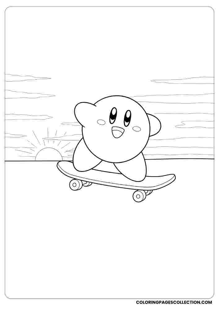 Kick your creativity by using this unique Kirby skateboarding at sunset. Choose bold colors and enjoy giving it life.