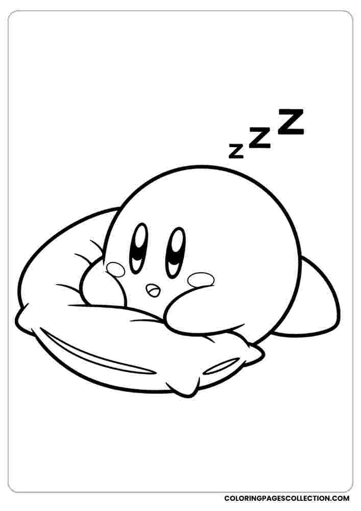 Relax and unwind when taking this intricate Kirby sleeping on pillow color page for life. Flow your creativity independently with every brushstroke or pencil stroke.