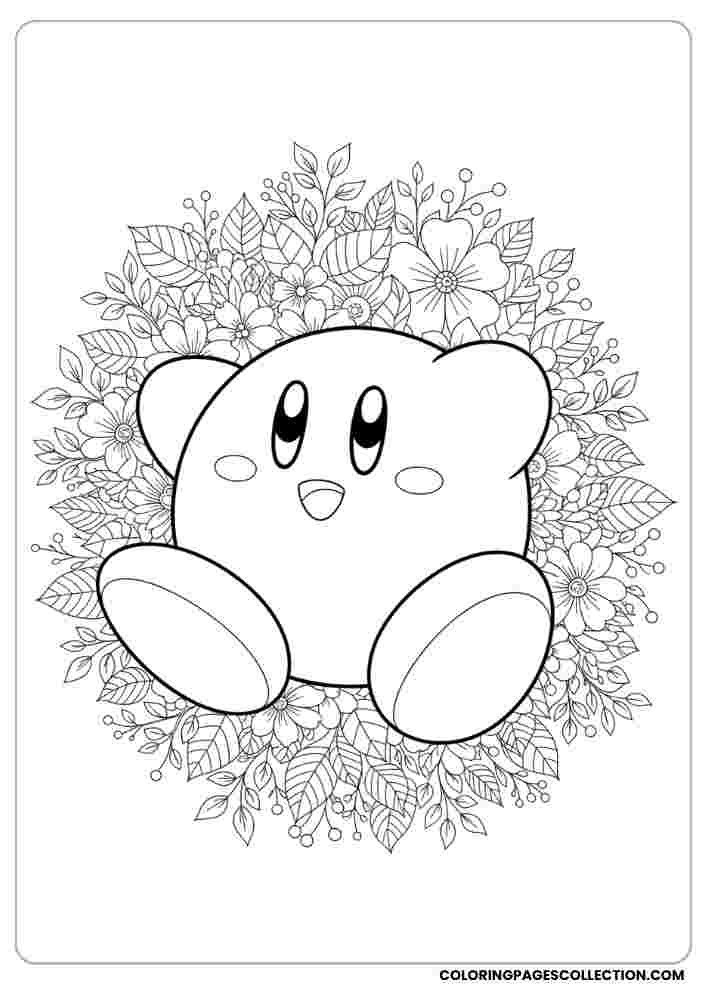 Get ready to color and relax with this charming Kirby with a floral ornamental background. Make it pop with colors that inspire you.