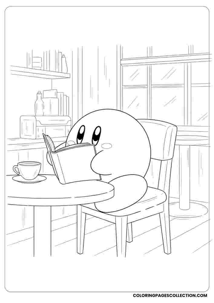Bring out your artistic side with this elegant Kirby reading in a cafe. Enjoy the journey with coloring and creativity.