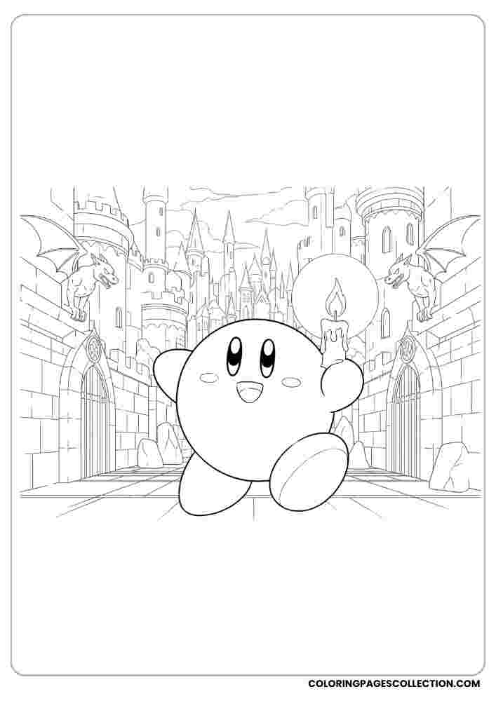 Looking for something soothing and fun? This wonderful Kirby holding a candle in a gothic castle will give you peace with every color you choose.